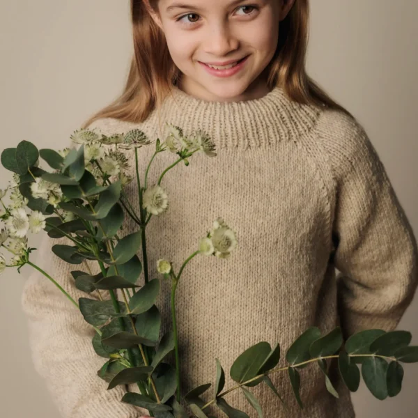 Genseren strikkes i Luna lamullgarn, men kan også strikkes i Vidde lamullgarn eller Varde pelsullgarn.