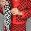 Den rød/bordeaux versjonen er strikket i Jensen farge 28 og Bouclé farge 33.