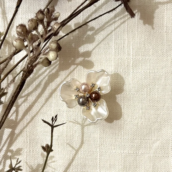Nydelig stor blomst med perler i midten. Denne nydelige «clip on» pynteknappen gjør hverdags-plagget til en fest! Passer til knapper opp til 13 mm. Ved bruk på mansjetter trenger man to.