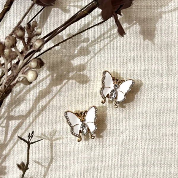 Skjønn liten gullkantet sommerfugl. Disse nydelige «clip on» pynteknappene gjør hverdags-plagget til en fest! Passer til knapper opp til 13 mm.
