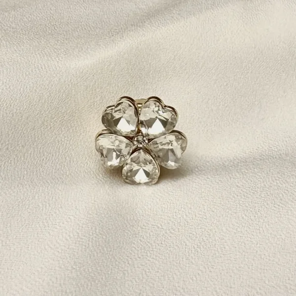Hjerteformete kronblader. Disse nydelige «clip on» pynteknappene gjør hverdags-plagget til en fest! Passer til knapper opp til 13 mm.