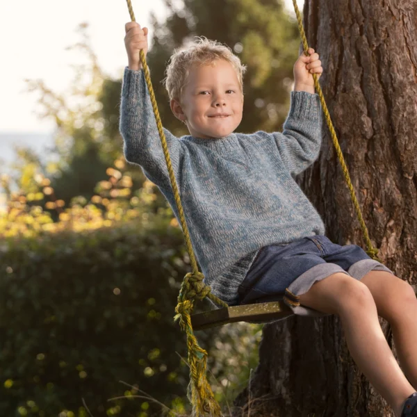 Lille cykeltur er en klassisk genser med en romslig passform som gjør den perfekt til en dag på legeplassen eller i skogen. Lille cykeltur gir plass til lek og bevegelse, samtidig sem den luner når dagen trekker ut.