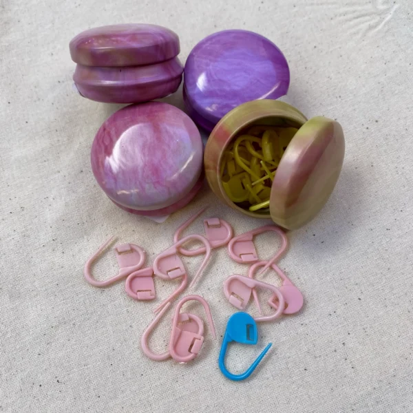 Den lille runde boksen har avtagbart lokk og inneholder ti maskemarkører i ulike farger.