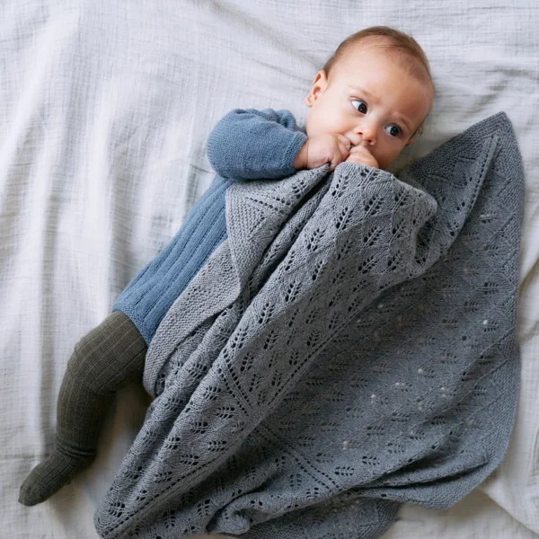 Olive’s Blanket er et mykt teppe i et delikat bladmønster, ideelt for å holde de minste varme.