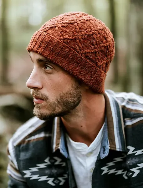 Ridley, designet av Meghan Babin, har et rytmisk flettemønster med stor visuell effekt. Den strikkes nedenfra og opp, og har en dyp, oppbrettbar ribbekant samt et vakkert og nyskapende flettemotiv – perfekt som en høstklar lue.