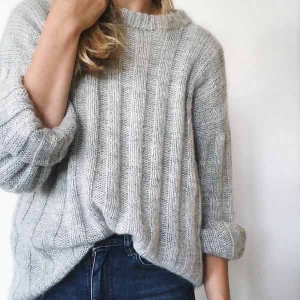 Materialer: 250 (300) 300 (350) 350 (350) 400 (400) 450 g Arwetta fra Filcolana (50 g = 210 m) strikkes sammen med 125 (150) 150 (175) 175 (175) 175-200 (200) 200 g Tilia fra Filcolana (25 g = 210 m)