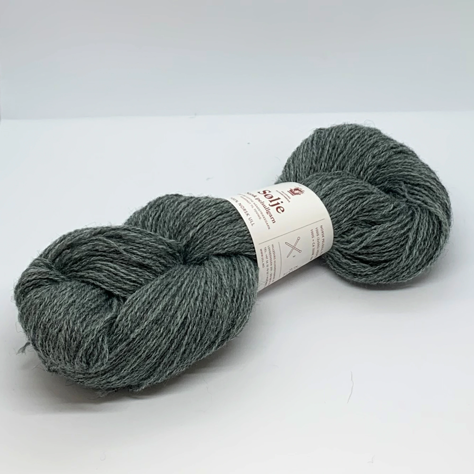 Glattstrikket skjerf i Sølje pelsullgarn som kan strikkes i 3 ulike størrelser.