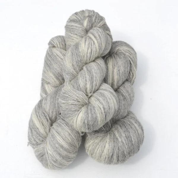 Tunt 1-trådigt garn av svensk ull för stickning av t ex sjalar.