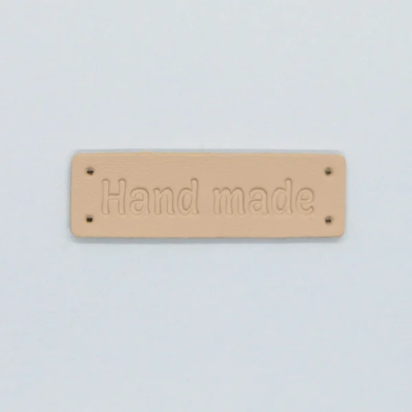 Label I imitert skinn med tekst «Hand Made»