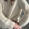 Jakken i oppskriften er strikket i Isager Tweed farge White sammen med Isager Silk Mohair farge E0.