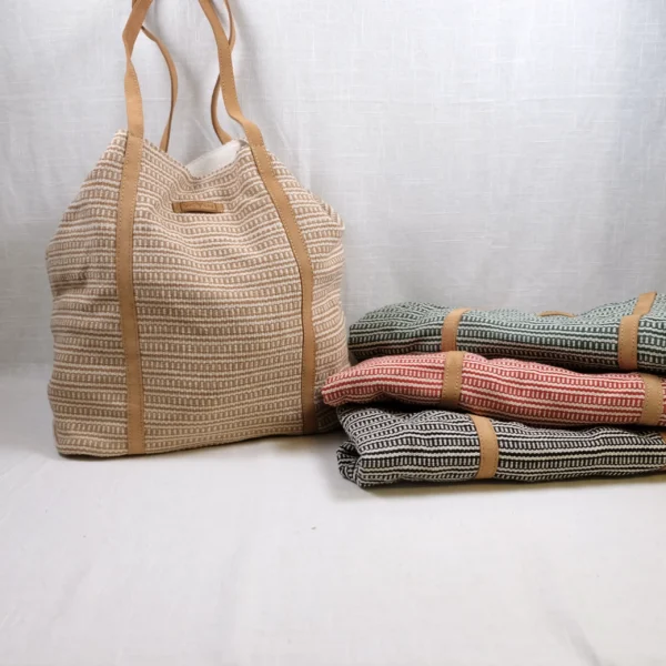 Alle varene fra Woven er laget i bærekraftig bomull med skinndetaljer og sømarbeid i svært god kvalitet. De skjønne oppbevaringsmappene er håndvevd og sydd av kvinner i Nepal under svært gode arbeidsforhold.
